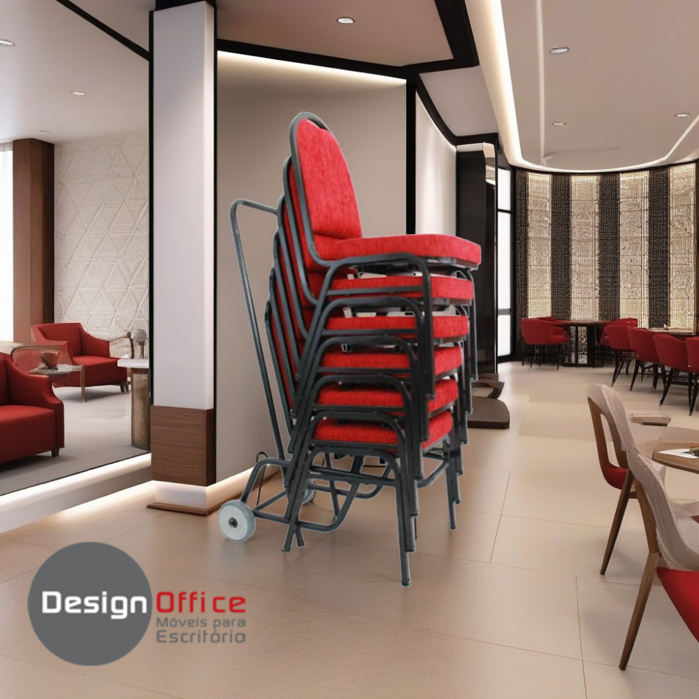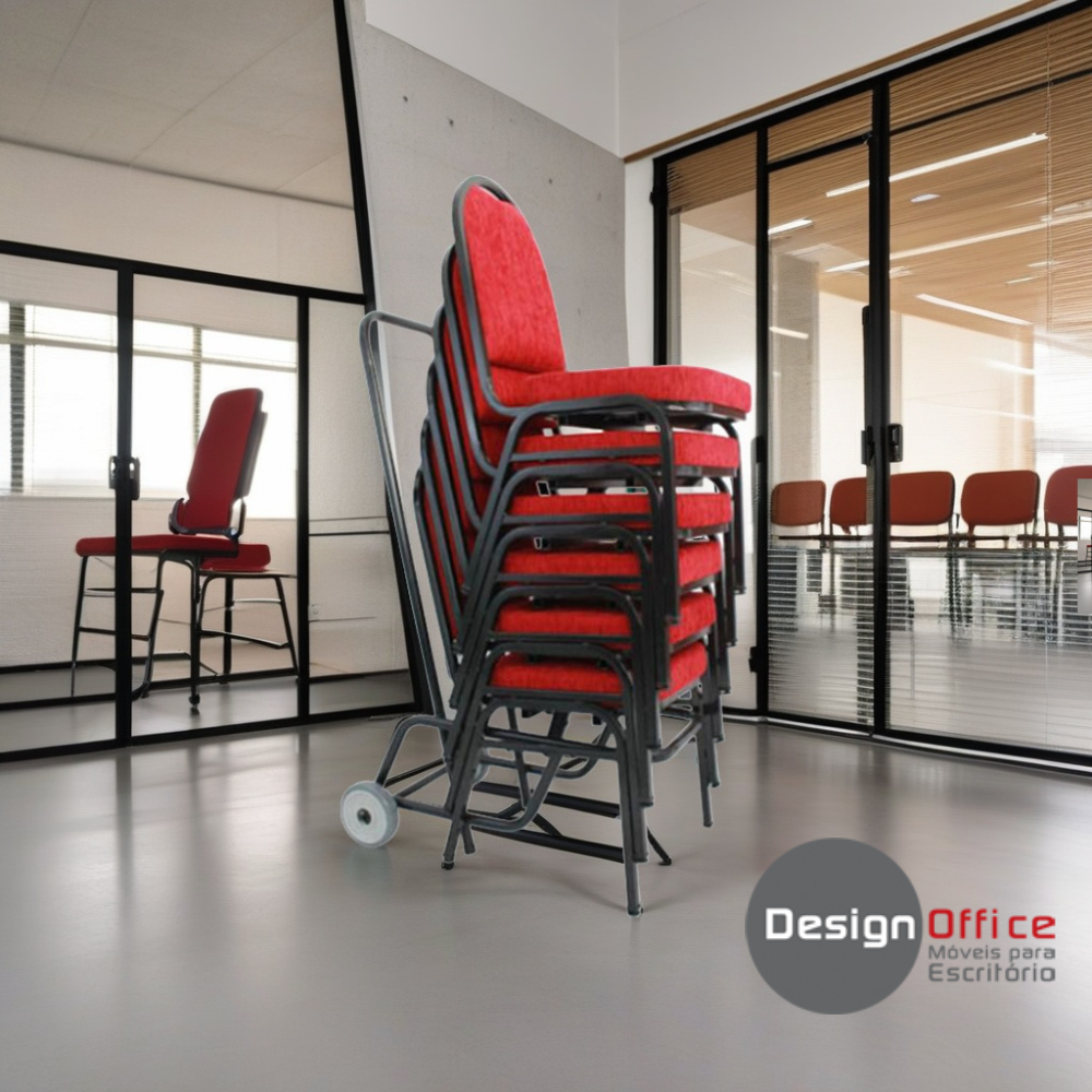 Esse carrinho é ideal para cadeiras empilháveis direcionadas para escritórios de advocacia, empresas de alto padrão, escritórios requintados, home offices, agências de publicidade, agências de propaganda, empresas start ups, agências de assessoria de imprensa, escritórios de representação, estúdios jornalísticos, agências de propaganda e marketing e etc..