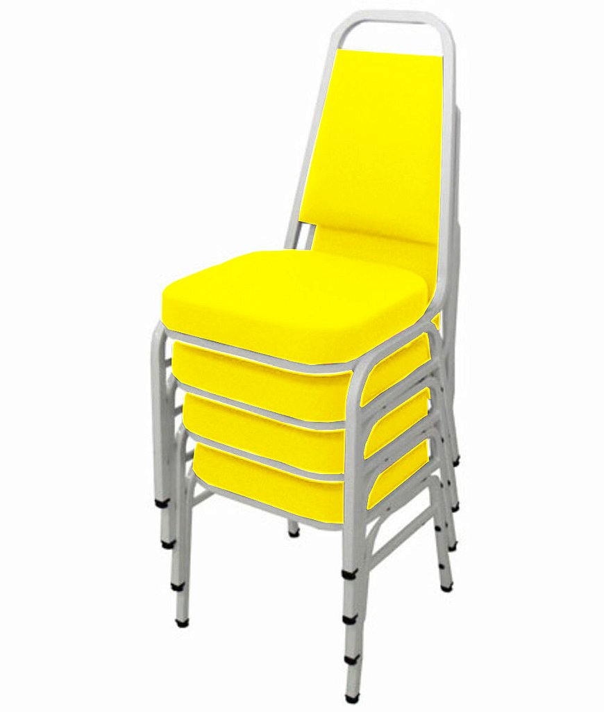 Kit com 4 Cadeiras Empilháveis Linha Hotel Plus Amarelo Tonalidade da Cor: Amarelo – Marca: Design Office Móveis – Kit com 4 Cadeiras Empilháveis Linha Hotel Plus Amarelo