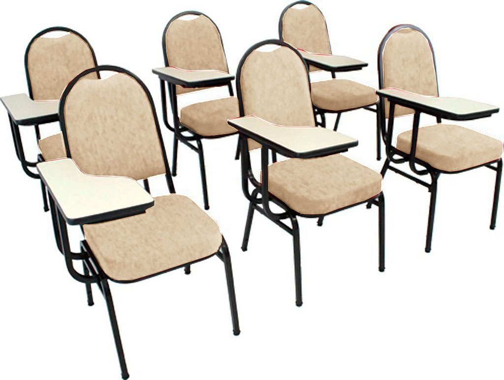 Kit com 6 Cadeiras Universitárias com prancheta para Auditórios Linha Hotel Bege – Tonalidade da Cor: Bege – Marca: Design Office Móveis – Modelo: Kit com 6 Cadeiras Universitárias com prancheta para Auditórios Linha Hotel Bege