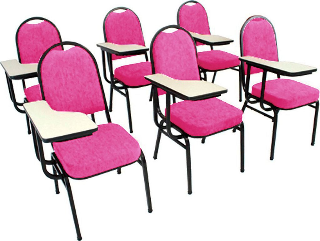 Kit com 6 Cadeiras Universitárias com prancheta para Auditórios Linha Hotel Rosa Pink – Tonalidade da Cor: Rosa Pink – Marca: Design Office Móveis – Modelo: Kit com 6 Cadeiras Universitárias com prancheta para Auditórios Linha Hotel Rosa Pink