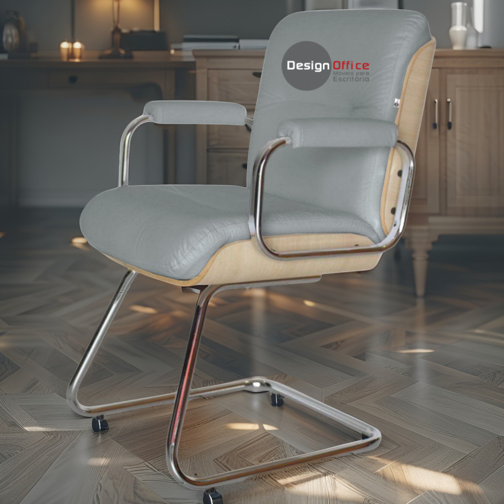 Cadeira Interlocutor Eames Linha Capa em Madeira Clara - Cinza Claro - Tonalidade da Cor: Cinza Claro - Marca: Design Office Móveis - Estrutura: Cromada - Tonalidade da Madeira: Clara - Modelo: Interlocutor