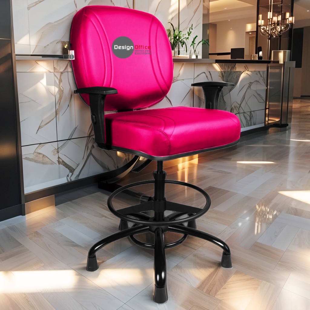 Cadeira Caixa Alta com Aro que Suporta até 250kg Giratória para Porteiros e Obesos, ideal para Portaria de Prédios e Condomínios Tonalidade da Cor do Assento e Encosto: Rosa Pink - Marca: Design Office Móveis - Revestimento do Assento e Encosto: Material Sintético