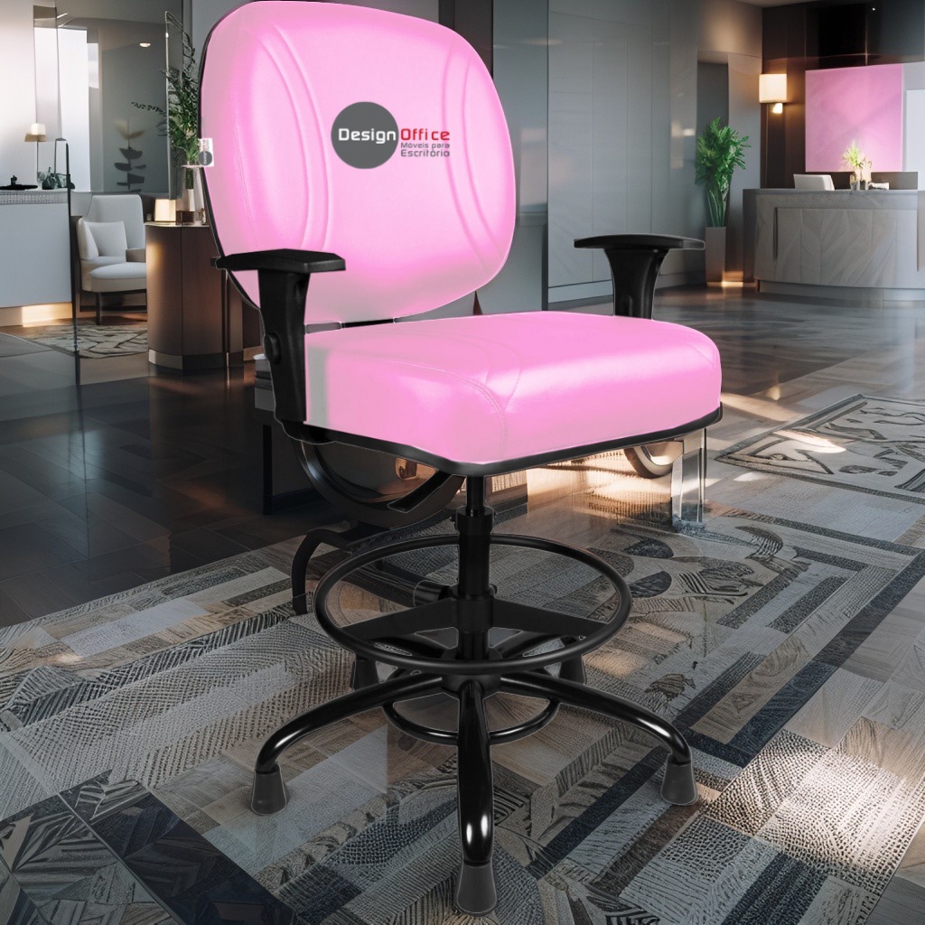 Cadeira Caixa Alta com Aro que Suporta até 250kg Giratória para Porteiros e Obesos, ideal para Portaria de Prédios e Condomínios Tonalidade da Cor do Assento e Encosto: Rosa Claro - Marca: Design Office Móveis - Revestimento do Assento e Encosto: Material Sintético