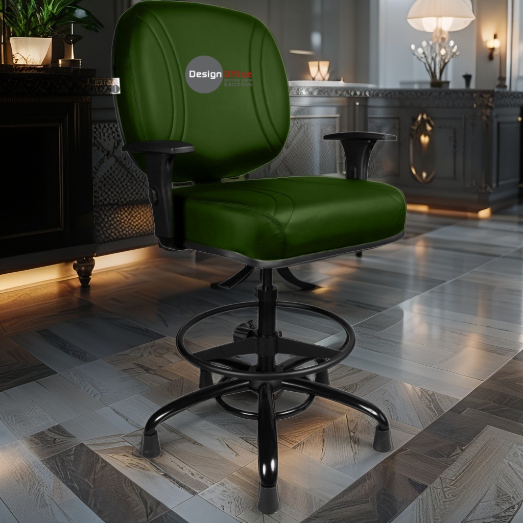 Cadeira Caixa Alta com Aro que Suporta até 250kg Giratória para Porteiros e Obesos, ideal para Portaria de Prédios e Condomínios Tonalidade da Cor do Assento e Encosto: Verde Escuro - Marca: Design Office Móveis - Revestimento do Assento e Encosto: Material Sintético
