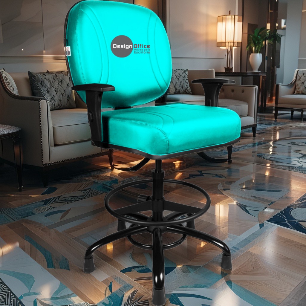 Cadeira Caixa Alta com Aro que Suporta até 250kg Giratória para Porteiros e Obesos, ideal para Portaria de Prédios e Condomínios Tonalidade da Cor do Assento e Encosto: Verde Água - Marca: Design Office Móveis - Revestimento do Assento e Encosto: Material Sintético