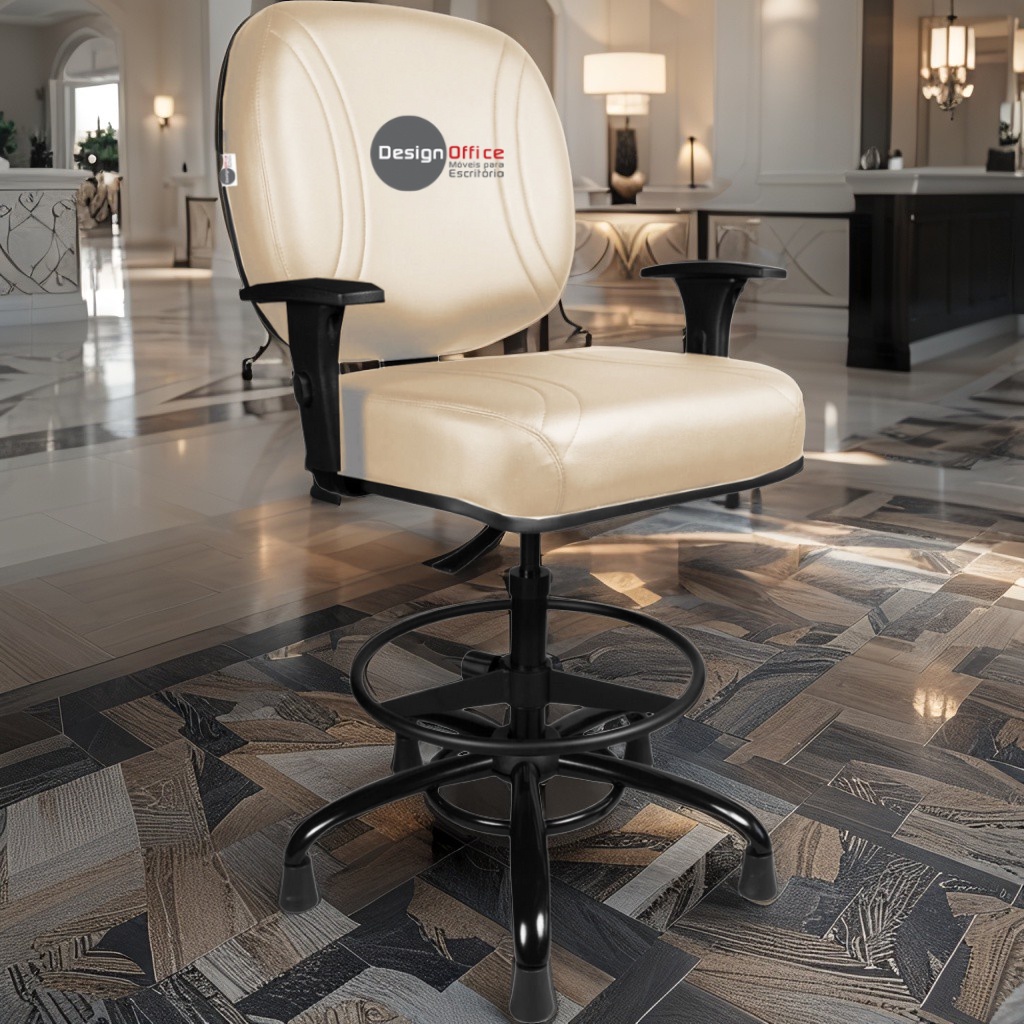 Cadeira Caixa Alta com Aro que Suporta até 250kg Giratória para Porteiros e Obesos, ideal para Portaria de Prédios e Condomínios Tonalidade da Cor do Assento e Encosto: Bege - Marca: Design Office Móveis - Revestimento do Assento e Encosto: Material Sintético
