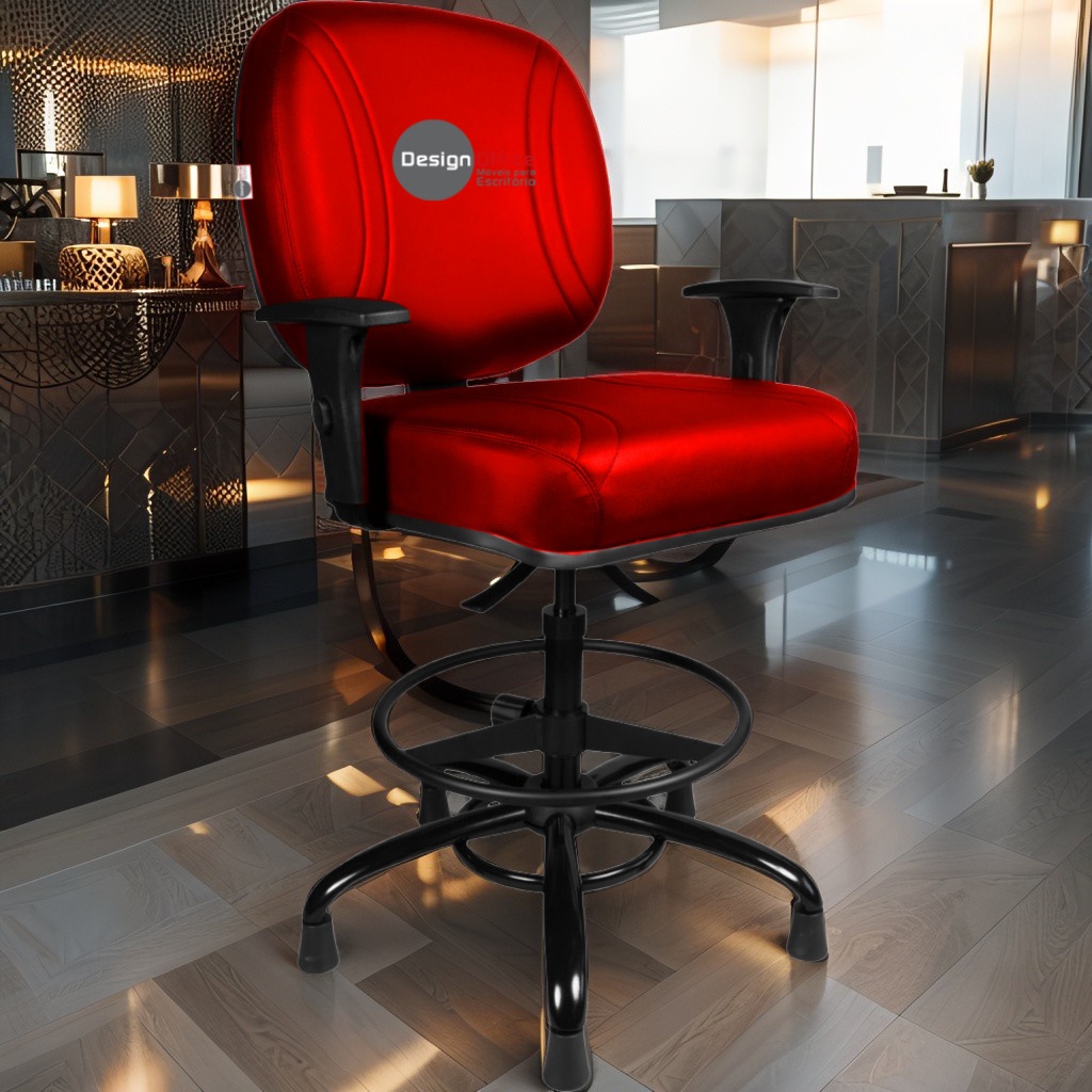 Cadeira Caixa Alta com Aro que Suporta até 250kg Giratória para Porteiros e Obesos, ideal para Portaria de Prédios e Condomínios Tonalidade da Cor do Assento e Encosto: Vermelho - Marca: Design Office Móveis - Revestimento do Assento e Encosto: Material Sintético