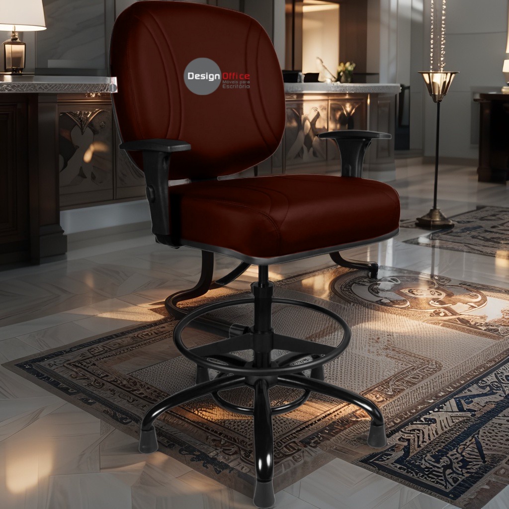 Cadeira Caixa Alta com Aro que Suporta até 250kg Giratória para Porteiros e Obesos, ideal para Portaria de Prédios e Condomínios Tonalidade da Cor do Assento e Encosto: Vermelho Vinho - Marca: Design Office Móveis - Revestimento do Assento e Encosto: Material Sintético