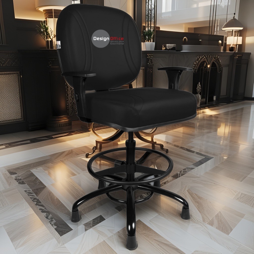 Cadeira Caixa Alta com Aro que Suporta até 250kg Giratória para Porteiros e Obesos, ideal para Portaria de Prédios e Condomínios Tonalidade da Cor do Assento e Encosto: Preto - Marca: Design Office Móveis - Revestimento do Assento e Encosto: Material Sintético