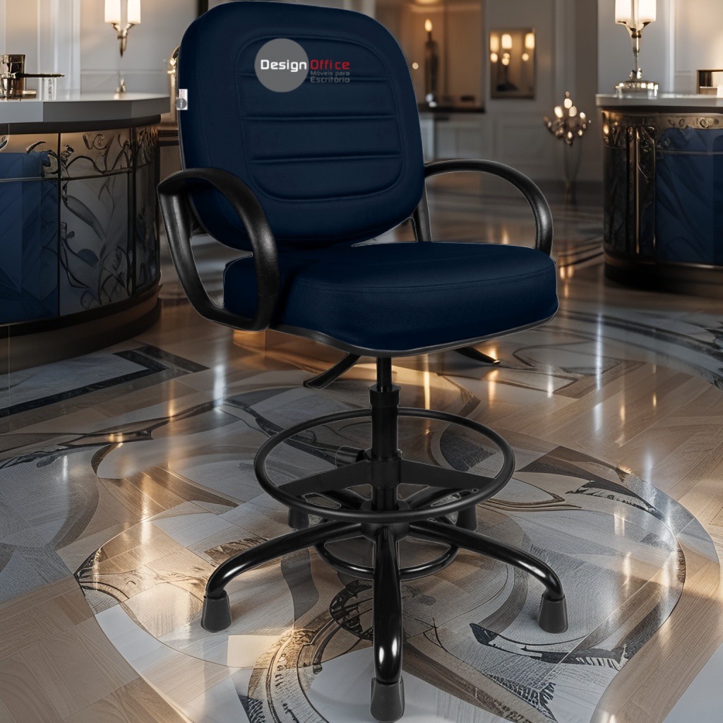 Cadeira Caixa Alta com Aro que Suporta até 250kg Giratória para Porteiros e Obesos, ideal para Portaria de Prédios e Condomínios Tonalidade da Cor do Assento e Encosto: Azul Marinho Marca: Design Office Móveis - Revestimento do Assento e Encosto: Material Sintético - Linha Plus Size