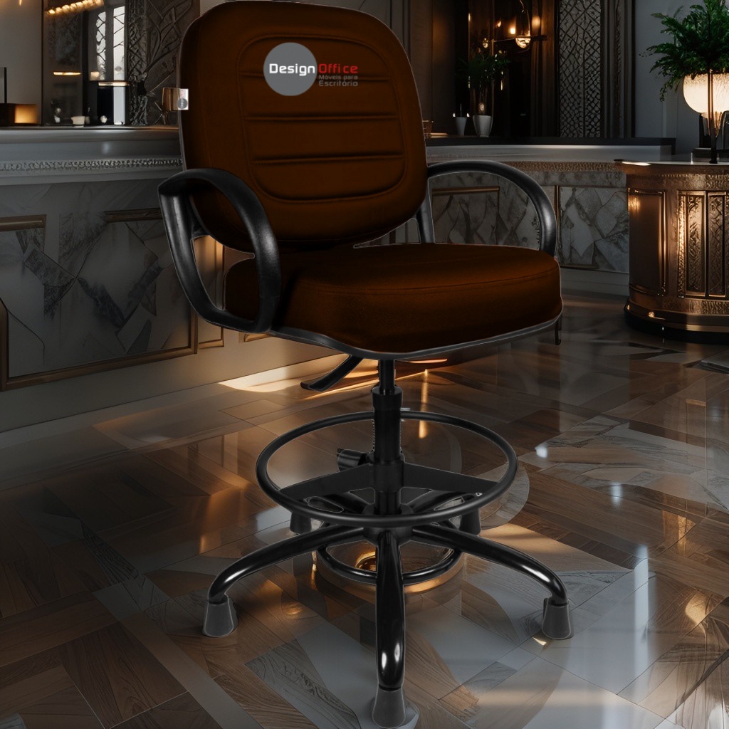 Cadeira Caixa Alta com Aro que Suporta até 250kg Giratória para Porteiros e Obesos, ideal para Portaria de Prédios e Condomínios Tonalidade da Cor do Assento e Encosto: Marrom Marca: Design Office Móveis - Revestimento do Assento e Encosto: Material Sintético - Linha Plus Size