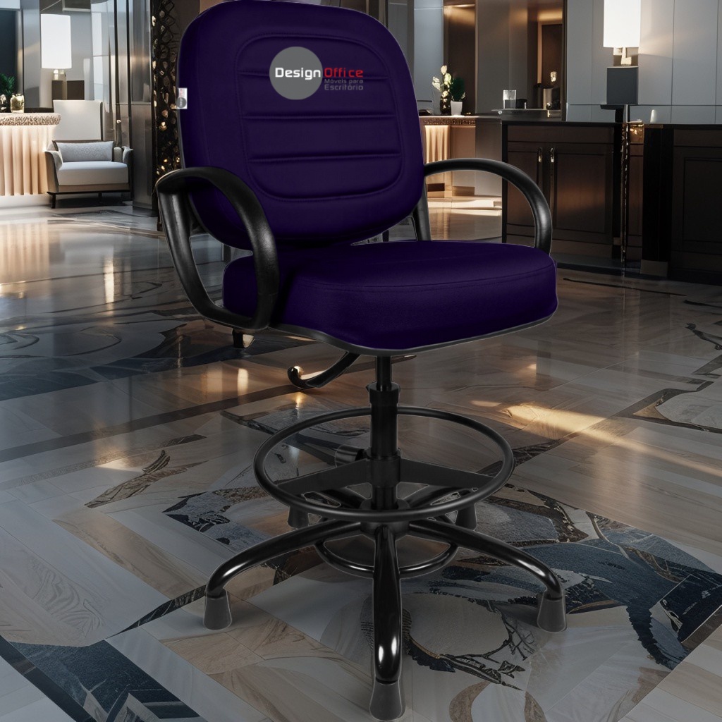 Cadeira Caixa Alta com Aro que Suporta até 250kg Giratória para Porteiros e Obesos, ideal para Portaria de Prédios e Condomínios Tonalidade da Cor do Assento e Encosto: Roxo Marca: Design Office Móveis - Revestimento do Assento e Encosto: Material Sintético - Linha Plus Size