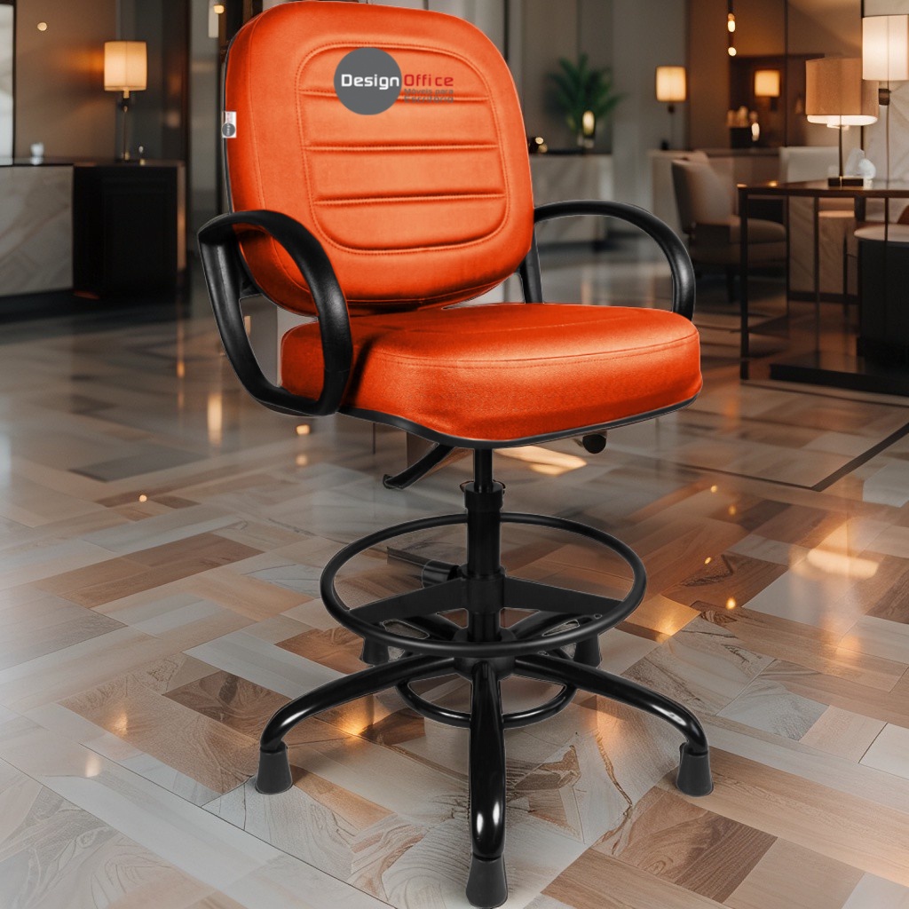 Cadeira Caixa Alta com Aro que Suporta até 250kg Giratória para Porteiros e Obesos, ideal para Portaria de Prédios e Condomínios Tonalidade da Cor do Assento e Encosto: Vermelho Telha Marca: Design Office Móveis - Revestimento do Assento e Encosto: Material Sintético - Linha Plus Size