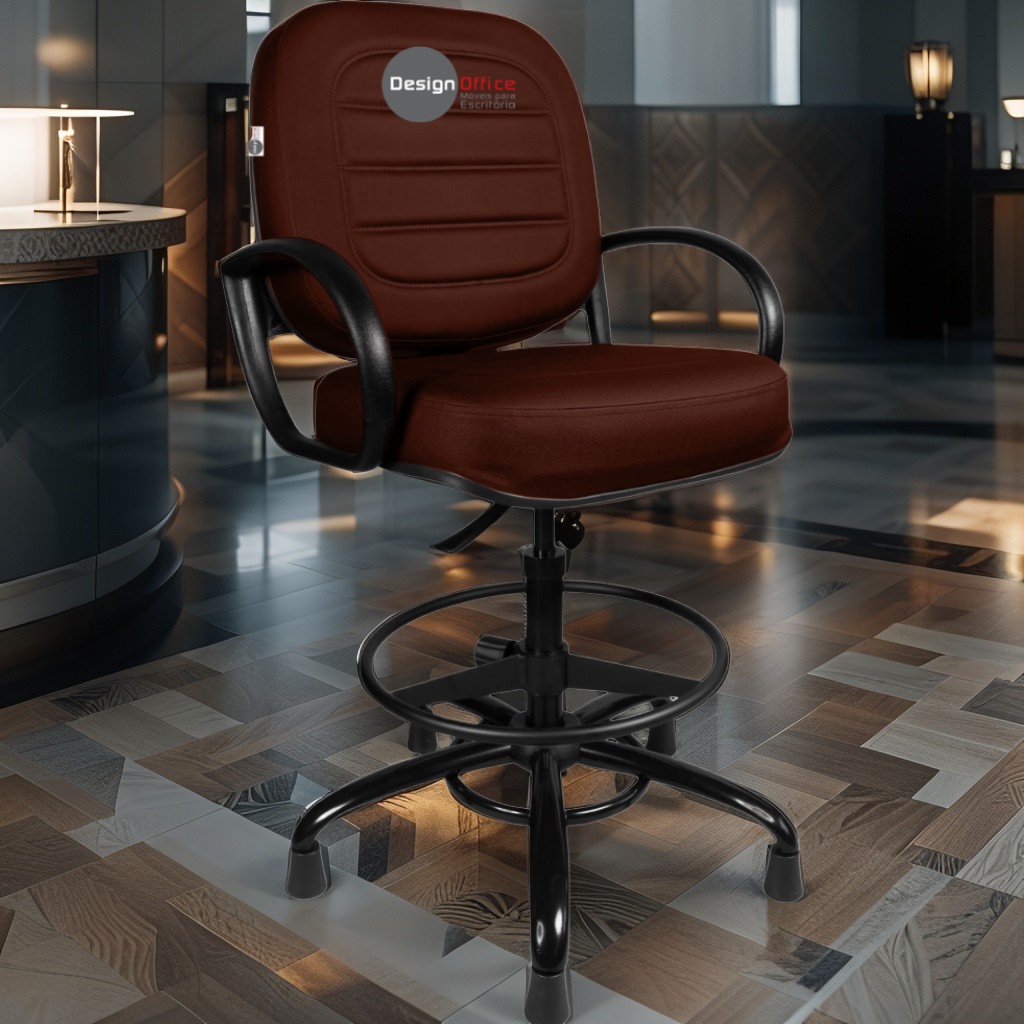 Cadeira Caixa Alta com Aro que Suporta até 250kg Giratória para Porteiros e Obesos, ideal para Portaria de Prédios e Condomínios Tonalidade da Cor do Assento e Encosto: Vermelho Vinho Marca: Design Office Móveis - Revestimento do Assento e Encosto: Material Sintético - Linha Plus Size