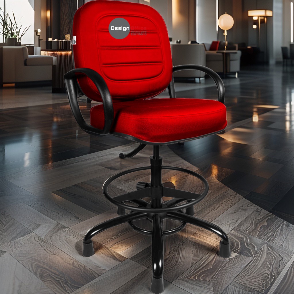 Cadeira Caixa Alta com Aro que Suporta até 250kg Giratória para Porteiros e Obesos, ideal para Portaria de Prédios e Condomínios Tonalidade da Cor do Assento e Encosto: Vermelho - Marca: Design Office Móveis - Revestimento do Assento e Encosto: Material Sintético - Linha Plus Size