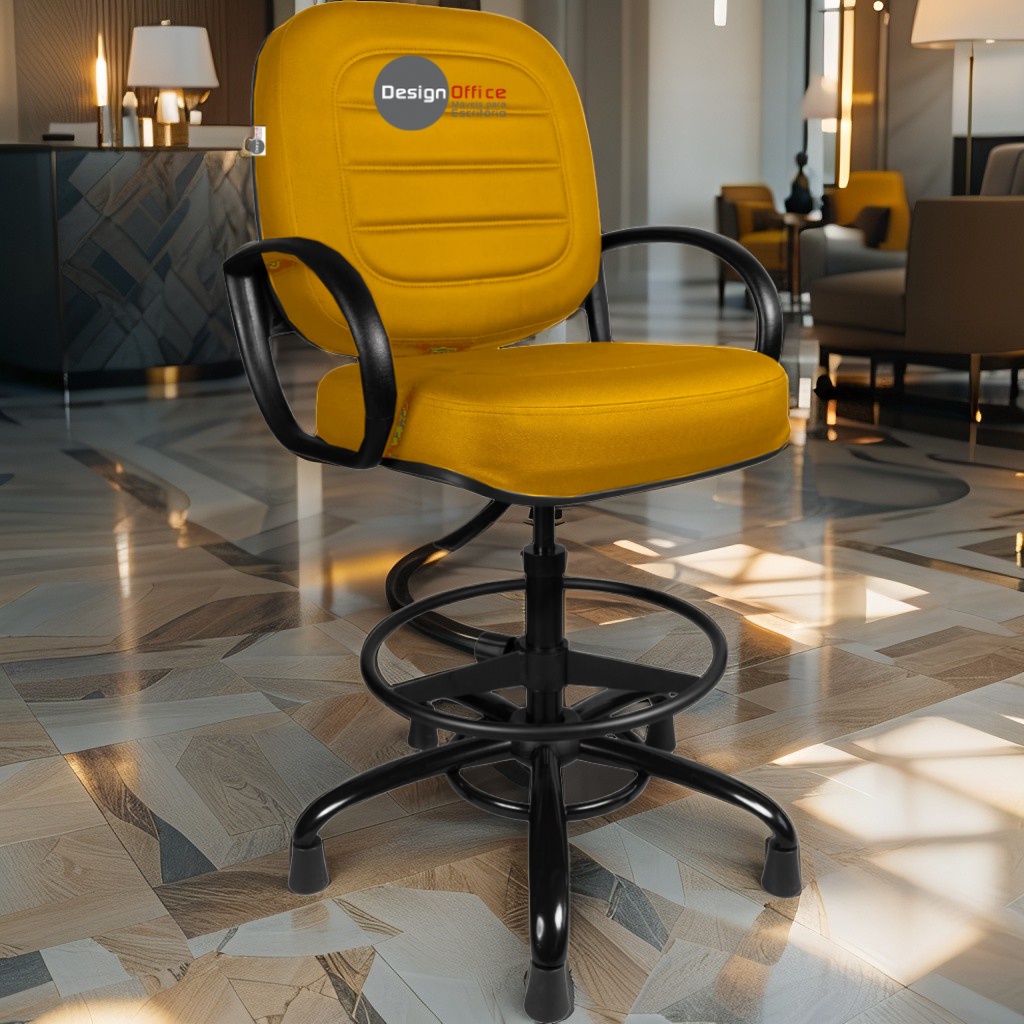 Cadeira Caixa Alta com Aro que Suporta até 250kg Giratória para Porteiros e Obesos, ideal para Portaria de Prédios e Condomínios Tonalidade da Cor do Assento e Encosto: Amarelo Mostarda - Marca: Design Office Móveis - Revestimento do Assento e Encosto: Material Sintético - Linha Plus Size