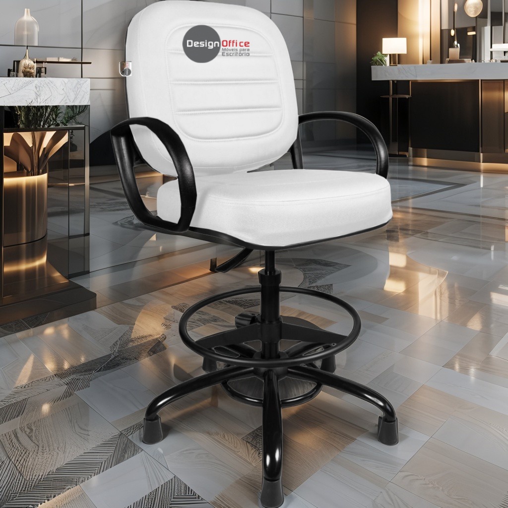 Cadeira Caixa Alta com Aro que Suporta até 250kg Giratória para Porteiros e Obesos, ideal para Portaria de Prédios e Condomínios Tonalidade da Cor do Assento e Encosto: Branco - Marca: Design Office Móveis - Revestimento do Assento e Encosto: Material Sintético - Linha Plus Size