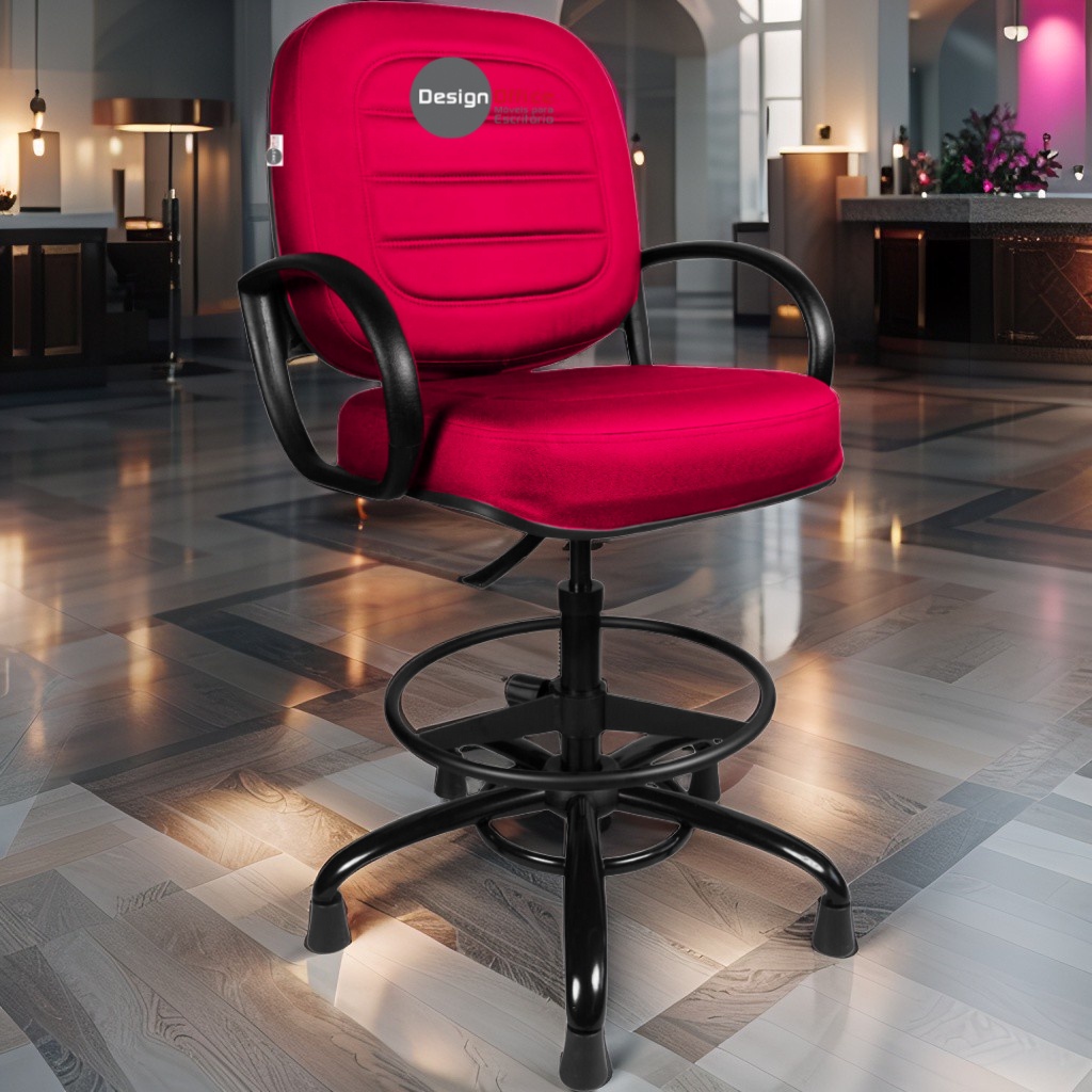 Cadeira Caixa Alta com Aro que Suporta até 250kg Giratória para Porteiros e Obesos, ideal para Portaria de Prédios e Condomínios Tonalidade da Cor do Assento e Encosto: Rosa Pink - Marca: Design Office Móveis - Revestimento do Assento e Encosto: Material Sintético - Linha Plus Size
