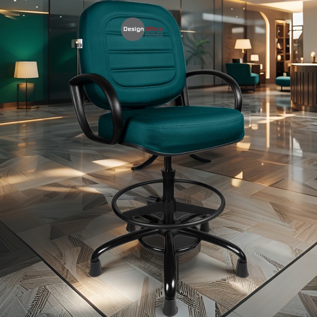 Cadeira Caixa Alta com Aro que Suporta até 250kg Giratória para Porteiros e Obesos, ideal para Portaria de Prédios e Condomínios Tonalidade da Cor do Assento e Encosto: Verde - Marca: Design Office Móveis - Revestimento do Assento e Encosto: Material Sintético - Linha Plus Size