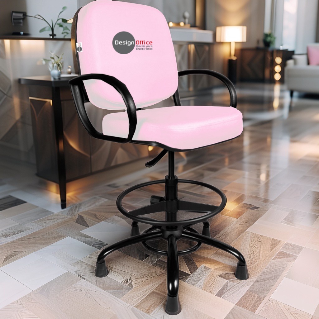Cadeira Caixa Alta com Aro que Suporta até 250kg Giratória para Porteiros e Obesos, ideal para Portaria de Prédios e Condomínios Tonalidade da Cor do Assento e Encosto: Rosa Claro Marca: Design Office Móveis - Revestimento do Assento e Encosto: Material Sintético - Linha Plus Size