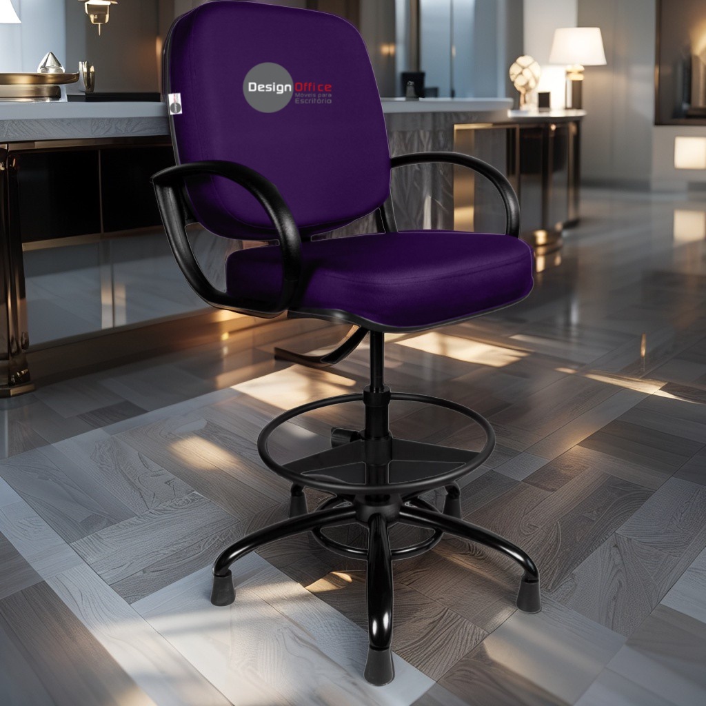 Cadeira Caixa Alta com Aro que Suporta até 250kg Giratória para Porteiros e Obesos, ideal para Portaria de Prédios e Condomínios Tonalidade da Cor do Assento e Encosto: Roxo Marca: Design Office Móveis - Revestimento do Assento e Encosto: Material Sintético - Linha Plus Size