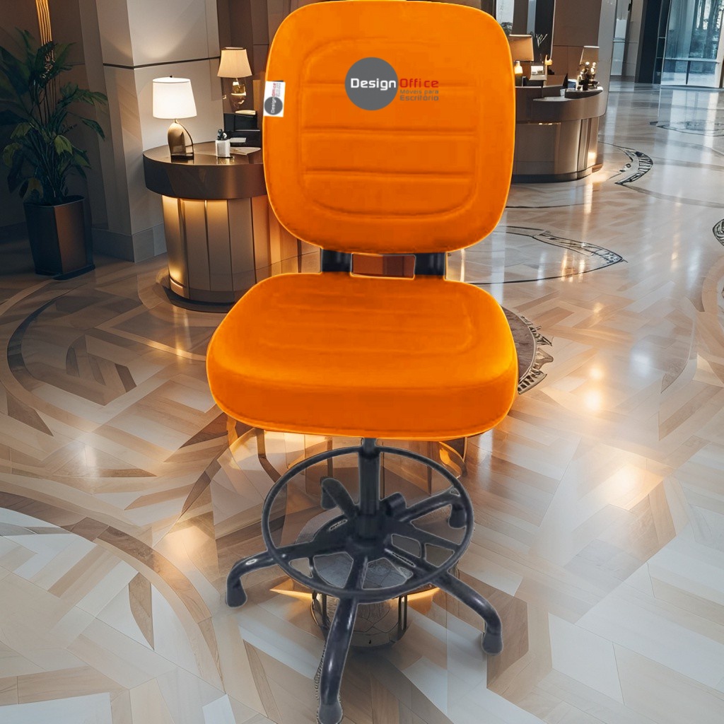 Cadeira Caixa Alta com Aro que Suporta até 250kg Giratória para Porteiros e Obesos, ideal para Portaria de Prédios e Condomínios Tonalidade da Cor do Assento e Encosto: Laranja Marca: Design Office Móveis - Revestimento do Assento e Encosto: Material Sintético - Linha Plus Size