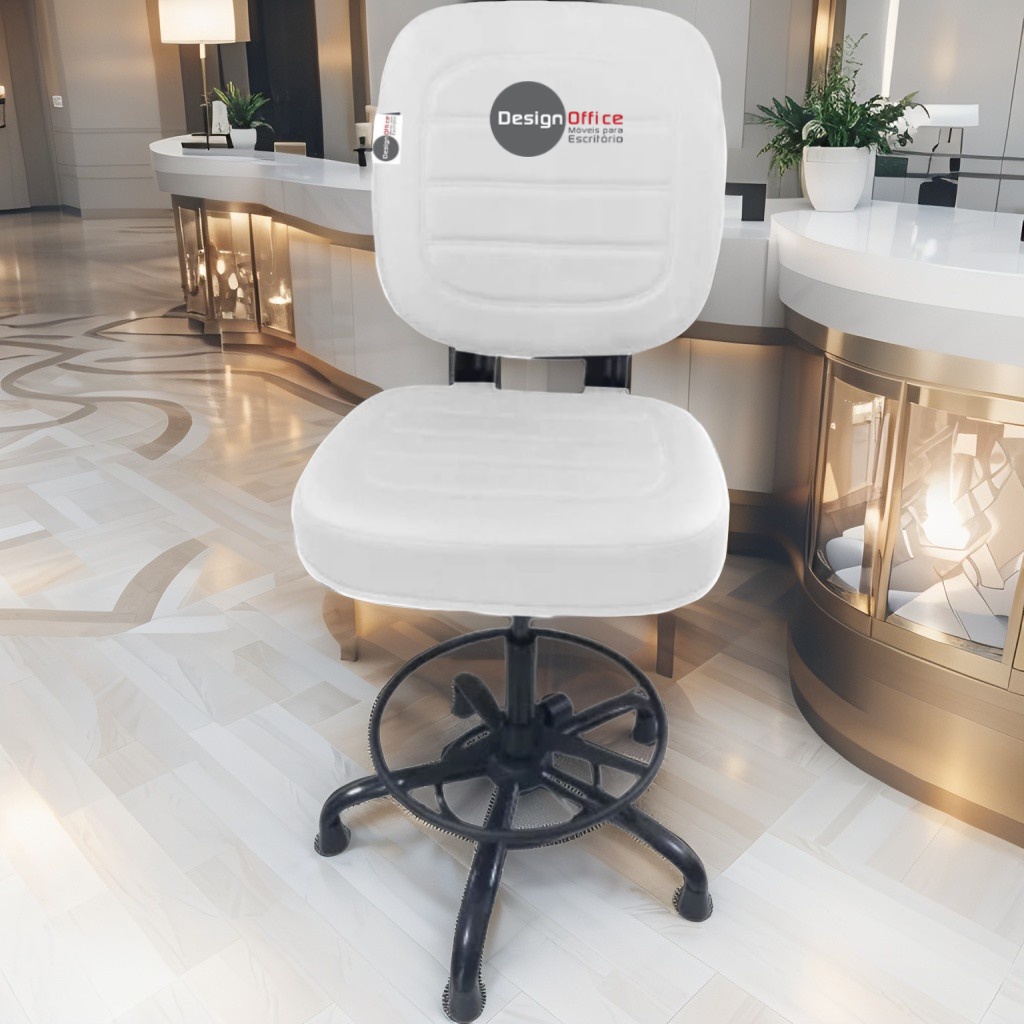 Cadeira Caixa Alta com Aro que Suporta até 250kg Giratória para Porteiros e Obesos, ideal para Portaria de Prédios e Condomínios Tonalidade da Cor do Assento e Encosto: Branco Marca: Design Office Móveis - Revestimento do Assento e Encosto: Material Sintético - Linha Plus Size