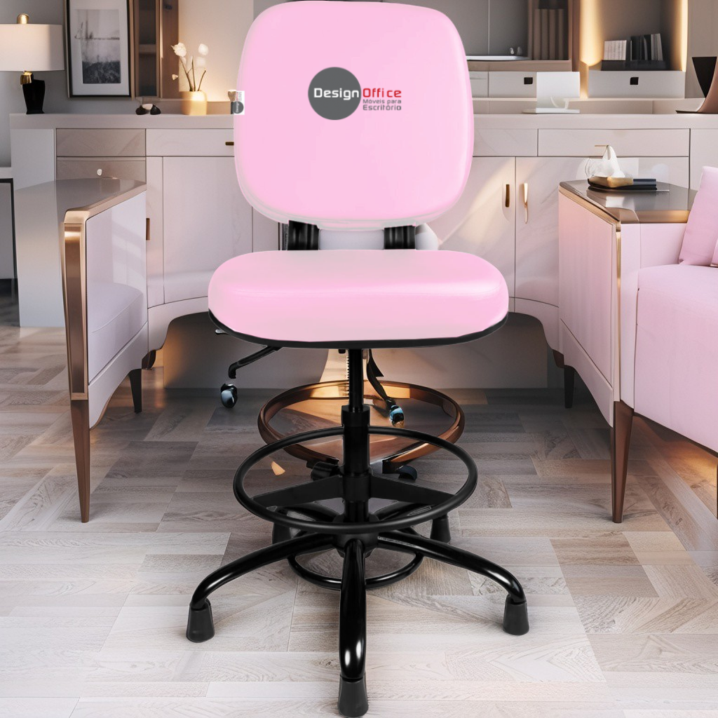 Cadeira Caixa Alta com Aro que Suporta até 250kg Giratória para Porteiros e Obesos, ideal para Portaria de Prédios e Condomínios Tonalidade da Cor do Assento e Encosto: Rosa Claro Marca: Design Office Móveis - Revestimento do Assento e Encosto: Material Sintético - Linha Plus Size