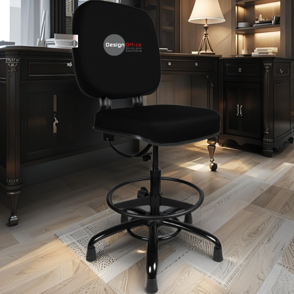 Cadeira Caixa Alta com Aro que Suporta até 250kg Giratória para Porteiros e Obesos, ideal para Portaria de Prédios e Condomínios Tonalidade da Cor do Assento e Encosto: Preto Marca: Design Office Móveis - Revestimento do Assento e Encosto: Material Sintético - Linha Plus Size