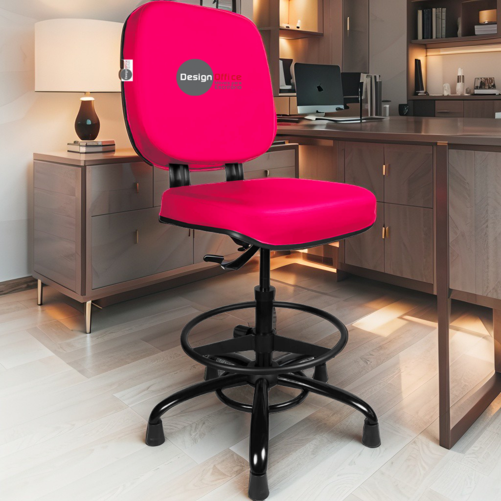 Cadeira Caixa Alta com Aro que Suporta até 250kg Giratória para Porteiros e Obesos, ideal para Portaria de Prédios e Condomínios Tonalidade da Cor do Assento e Encosto: Rosa Pink Marca: Design Office Móveis - Revestimento do Assento e Encosto: Material Sintético - Linha Plus Size