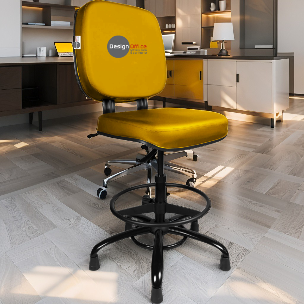 Cadeira Caixa Alta com Aro que Suporta até 250kg Giratória para Porteiros e Obesos, ideal para Portaria de Prédios e Condomínios Tonalidade da Cor do Assento e Encosto: Amarelo Mostarda Marca: Design Office Móveis - Revestimento do Assento e Encosto: Material Sintético - Linha Plus Size