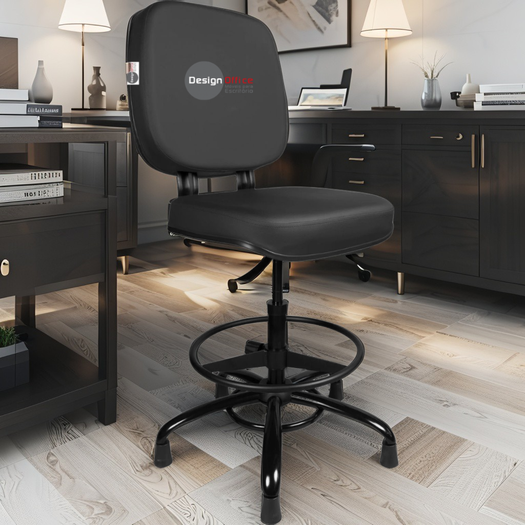 Cadeira Caixa Alta com Aro que Suporta até 250kg Giratória para Porteiros e Obesos, ideal para Portaria de Prédios e Condomínios Tonalidade da Cor do Assento e Encosto: Cinza Escuro Marca: Design Office Móveis - Revestimento do Assento e Encosto: Material Sintético - Linha Plus Size