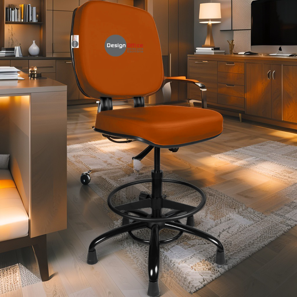 Cadeira Caixa Alta com Aro que Suporta até 250kg Giratória para Porteiros e Obesos, ideal para Portaria de Prédios e Condomínios Tonalidade da Cor do Assento e Encosto: Caramelo Marca: Design Office Móveis - Revestimento do Assento e Encosto: Material Sintético - Linha Plus Size