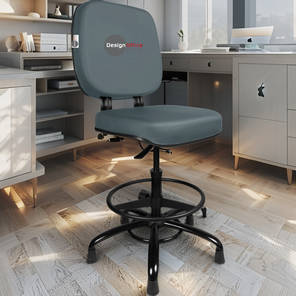 Cadeira Caixa Alta com Aro que Suporta até 250kg Giratória para Porteiros e Obesos, ideal para Portaria de Prédios e Condomínios Tonalidade da Cor do Assento e Encosto: Cinza Claro Marca: Design Office Móveis - Revestimento do Assento e Encosto: Material Sintético - Linha Plus Size