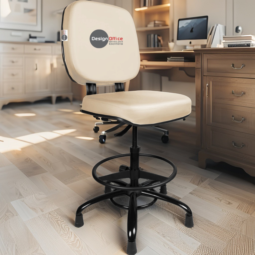 Cadeira Caixa Alta com Aro que Suporta até 250kg Giratória para Porteiros e Obesos, ideal para Portaria de Prédios e Condomínios Tonalidade da Cor do Assento e Encosto: Bege Marca: Design Office Móveis - Revestimento do Assento e Encosto: Material Sintético - Linha Plus Size