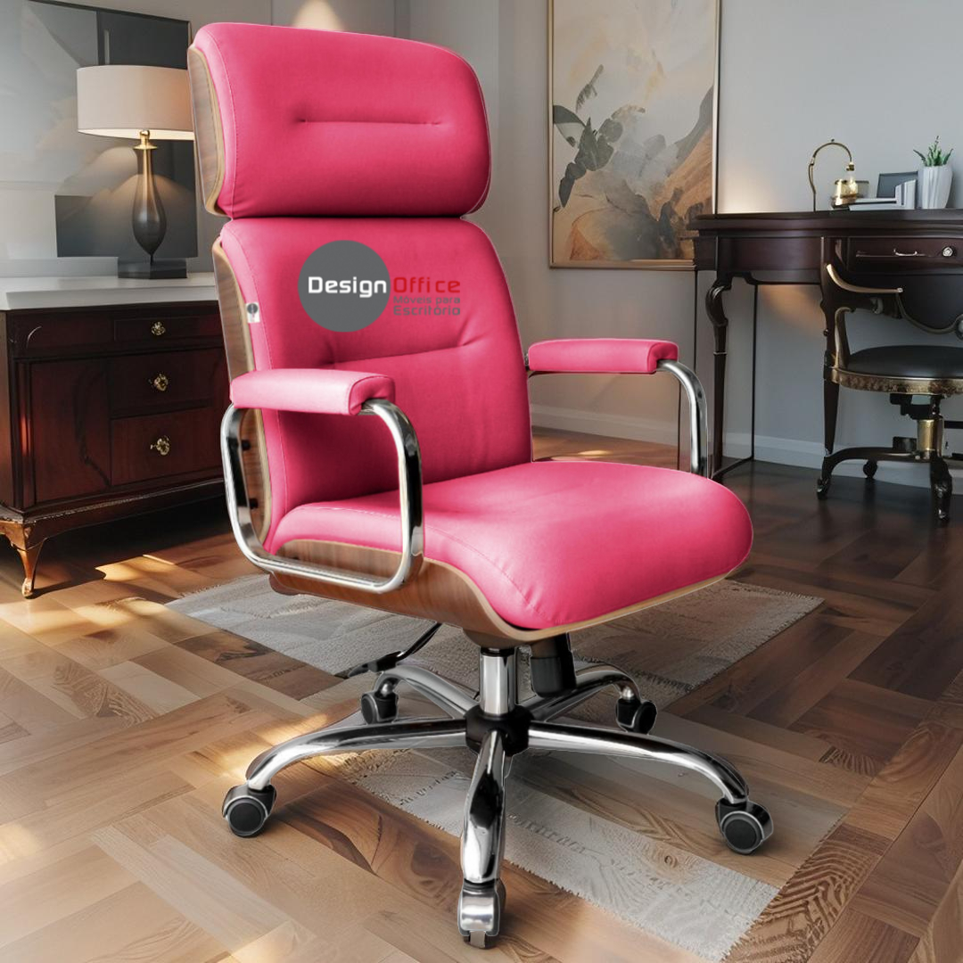 Cadeira Presidente Eames Linha Capa em Madeira - Rosa Pink - Tonalidade da Cor: Rosa Pink Marca: Design Office Móveis - Estrutura: Cromada - Tonalidade da Madeira: Escura - Modelo: Presidente
