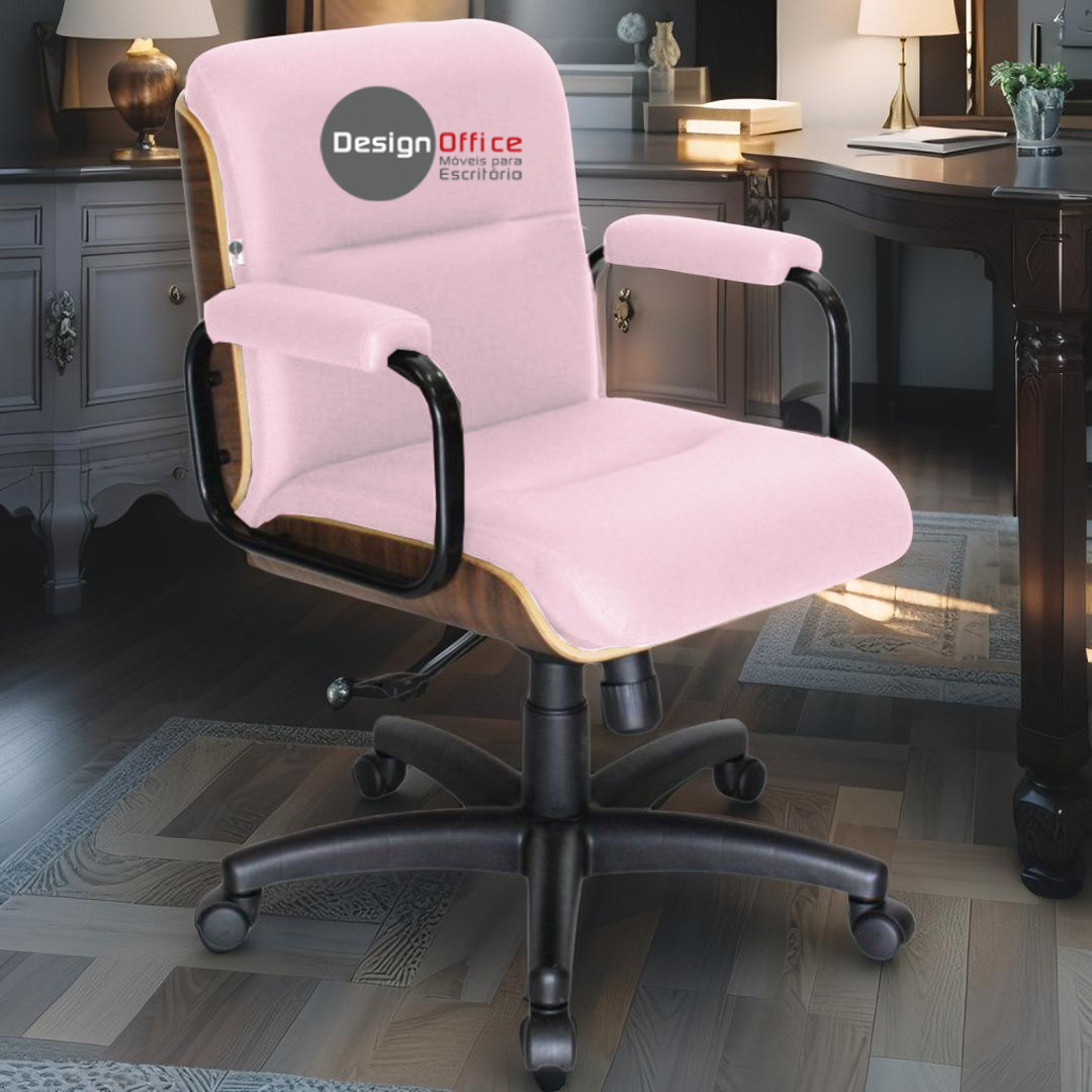 Cadeira Diretor Eames Linha Capa em Madeira - Rosa Claro - Tonalidade da Cor: Rosa Claro - Marca: Design Office Móveis - Estrutura: Black - Tonalidade da Madeira: Escura - Modelo: Diretor