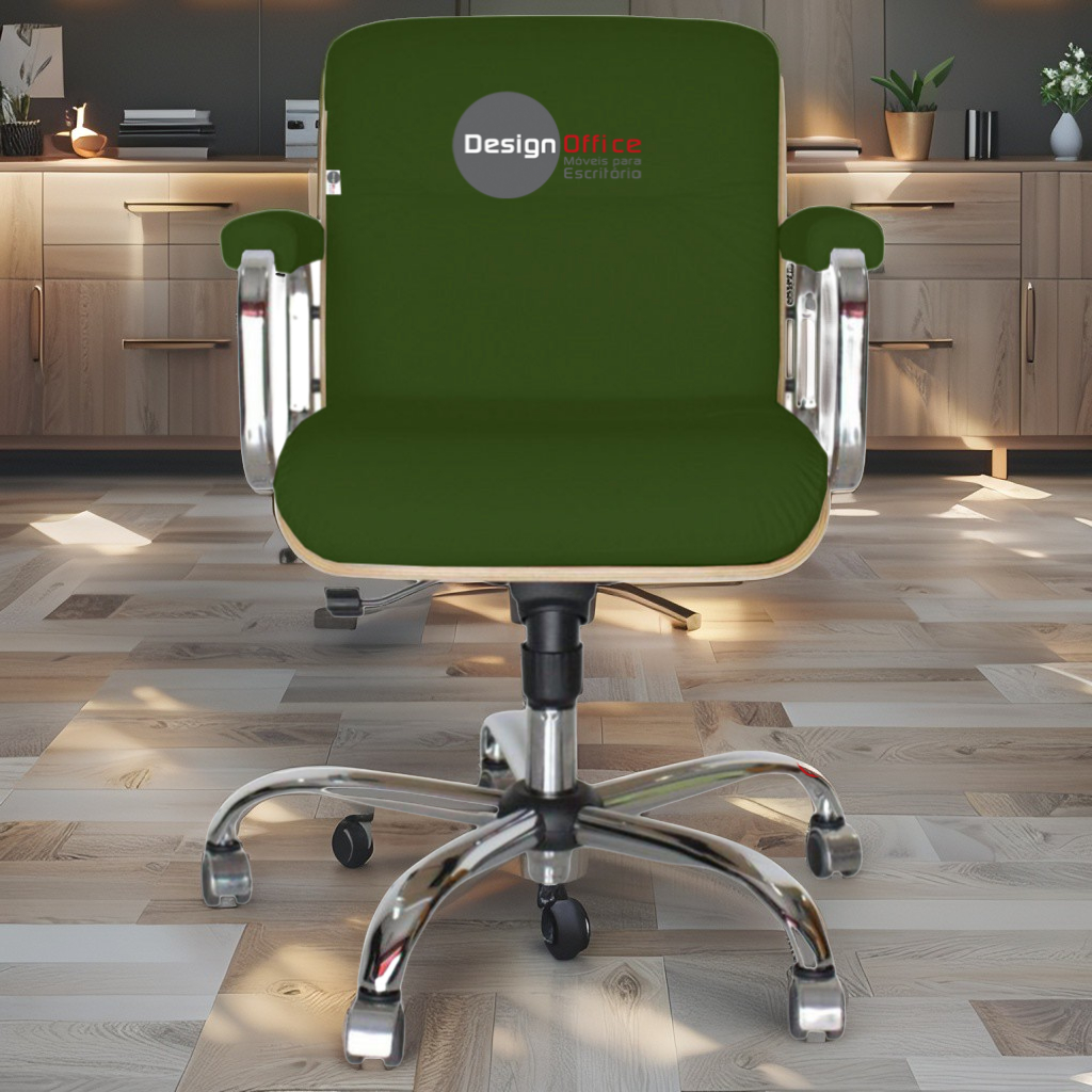 Cadeira Diretor Eames Linha Capa em Madeira Clara - Verde Escuro - Tonalidade da Cor: Verde Escuro - Marca: Design Office Móveis - Estrutura: Cromada - Tonalidade da Madeira: Clara - Modelo: Diretor