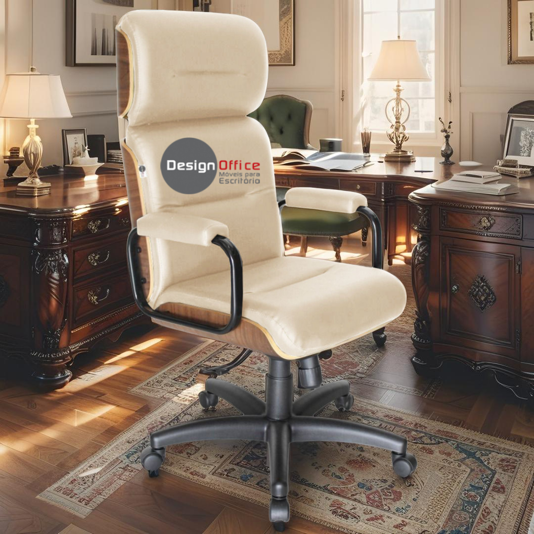 Cadeira Presidente Eames Linha Capa em Madeira - Cor: Bege - Tonalidade da Cor: Bege - Marca: Design Office Móveis - Estrutura: Black - Tonalidade da Madeira: Escura - Modelo: Presidente