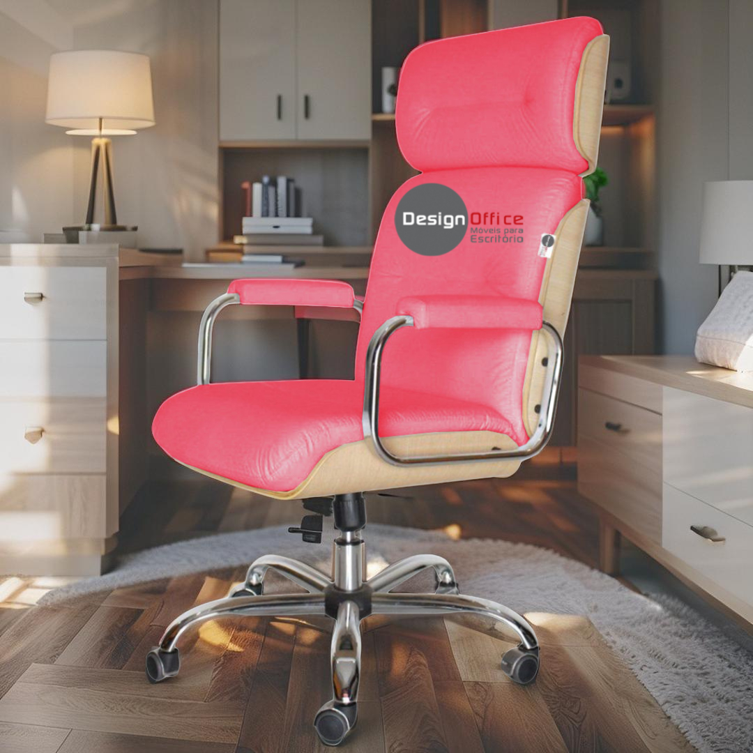 Cadeira Presidente Eames Linha Capa em Madeira Clara - Cor: Rosa Pink - Tonalidade da Cor: Rosa Pink - Marca: Design Office Móveis - Estrutura: Cromada - Tonalidade da Madeira: Clara - Modelo: Presidente