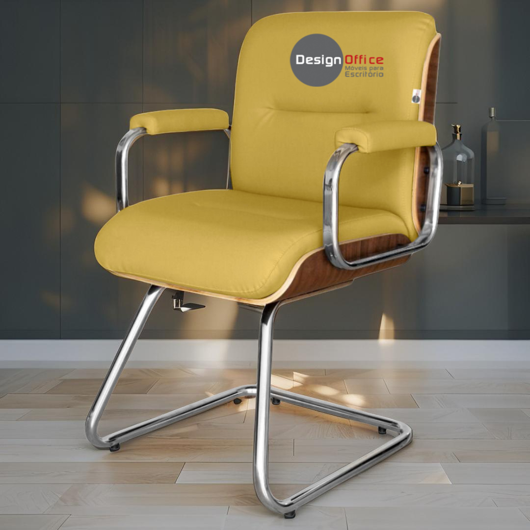 Cadeira Interlocutor Eames Linha Capa em Madeira - Amarelo Mostarda - Tonalidade da Cor: Amarelo Mostarda -Marca: Design Office Móveis - Estrutura: Cromada - Tonalidade da Madeira: Escura - Modelo: Interlocutor