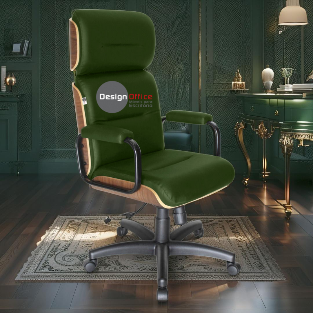 Cadeira Presidente Eames Linha Capa em Madeira - Cor: Verde Escuro - Tonalidade da Cor: Verde Escuro - Marca: Design Office Móveis - Estrutura: Black - Tonalidade da Madeira: Escura - Modelo: Presidente