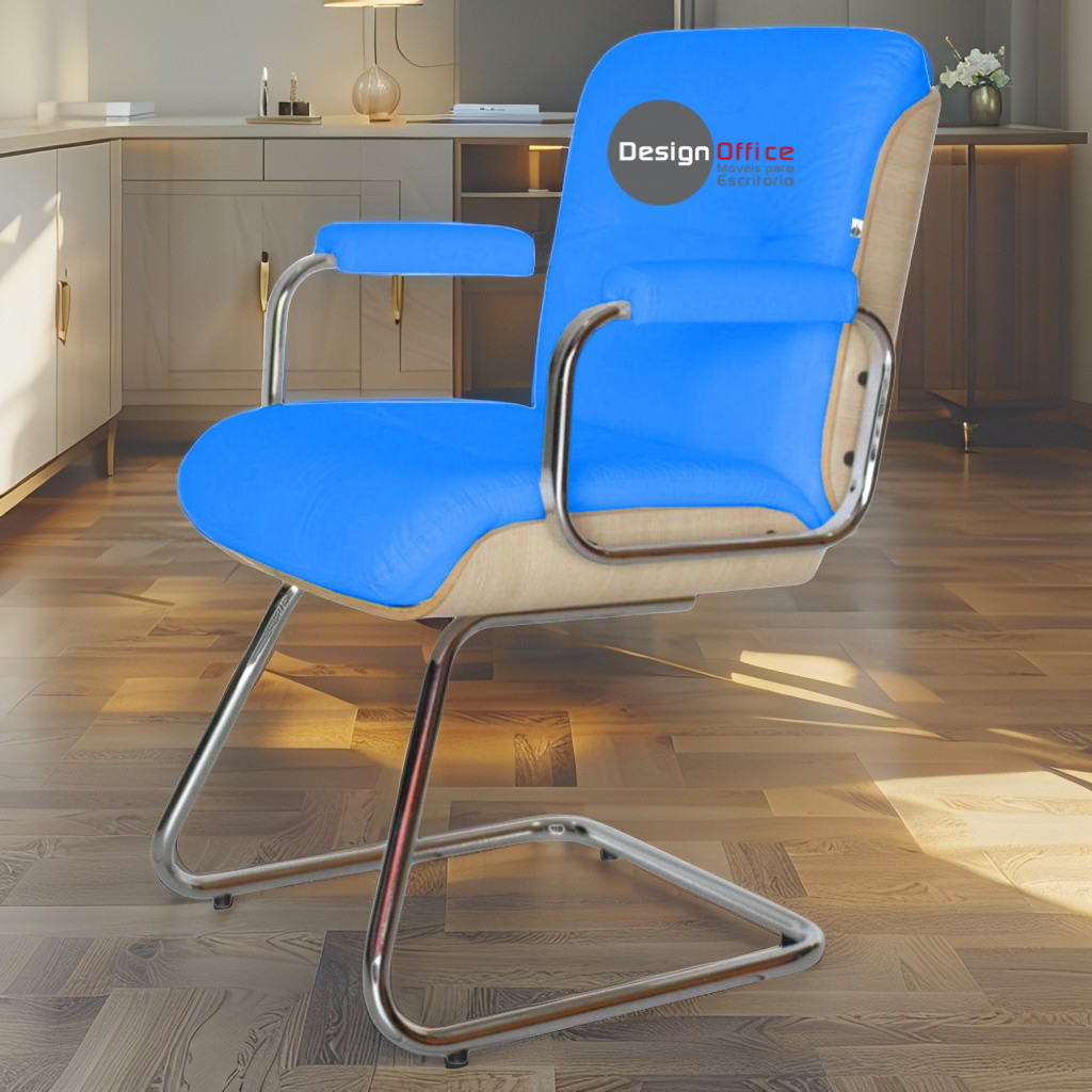 Cadeira Interlocutor Eames Linha Capa em Madeira Clara - Azul Bebê - Tonalidade da Cor: Azul Bebê - Marca: Design Office Móveis - Estrutura: Cromada - Tonalidade da Madeira: Clara - Modelo: Interlocutor
